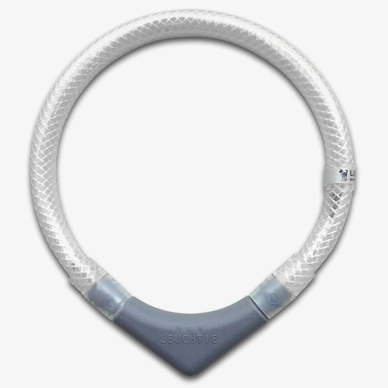 LEUCHTIE – der superhelle langlebige Leucht- Halsring für Hunde – Leuchtring. Das Leuchtie ist ein besonders robuster, langlebiger und wasserfester Leuchthalsring, mit dem Hunde bei Dämmerung oder Dunkelheit noch über eine sehr große Entfernung (mehrere 100 m) wahrgenommen werden können. Die praktische Befestigungs-Schlaufe sichert das LEUCHTIE am Halsband oder Brustgeschirr. Somit kann es dem Hund nicht über den Kopf rutschen.